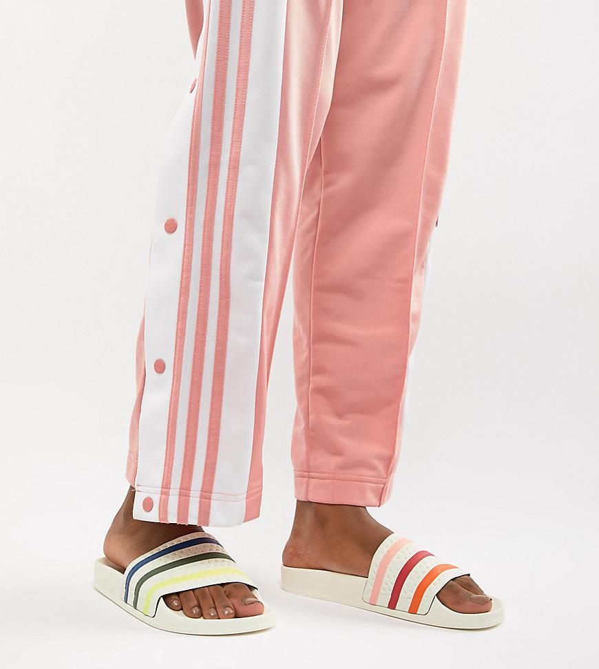 Similar products also available. Shop Adidas Originals Adidas Pride Adilette Slider Sandals In White - White from 350 stores starting at 50. Adilette slides that flash Pride with every step. Get the latest trends with ASOS now. Shop today with free delivery and returns TsCs apply with ASOS. Sep 19 2018 - Find the best selection of adidas Pride Adilette Slider Sandals In White. US - US WOMEN MEN. US - US WOMEN MEN. Moulded footbed Textured tread.